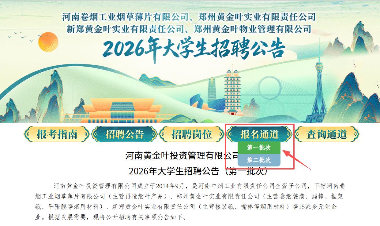 河南黄金叶投资管理有限公司所属企业2026年大学生招聘(第一批次)